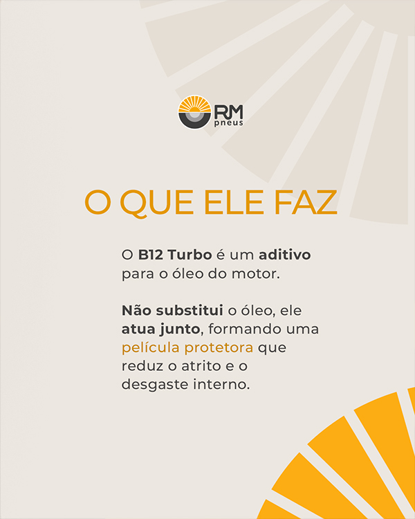 O B12 Turbo não substitui o óleo lubrificante: ele trabalha junto, como um reforço técnico pensado para quem precisa de durabilidade, menor desgaste e mais performance no dia a dia. Imagine um “escudo invisível” que reduz atrito, estabiliza a viscosidade e ainda ajuda a manter o motor limpo por dentro — é exatamente isso que ele faz.